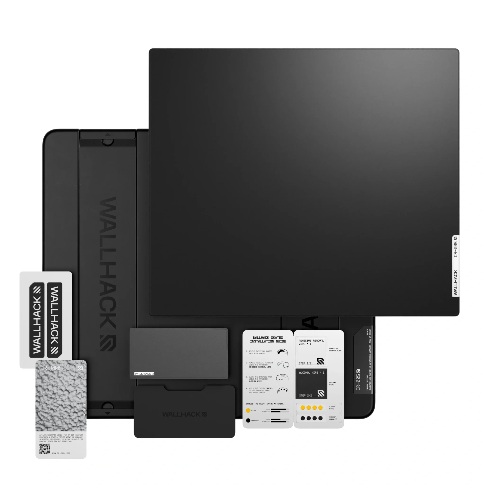 The CR-005 Bundles are meticulously engineered for refined control. Its surface features microscopic concave formations. Tiny crater-like structures that deliver both high static and kinetic friction for a stable, deliberate glide. Paired with the Pro Sleeve and Silent Skates, this is the package for ultimate control and precision.